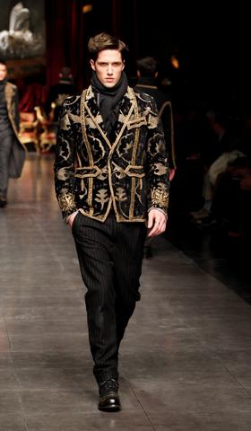 The Romance is the finest expression of Italian music. The arias sung by Luciano Pavarotti on the music of Giuseppe Verdi , then, are the Italian sound of which is thankfully not lost remember, but that - in fact - now seems a distant memory. Bring a reminder to current is always very difficult task, because the risk is to fall into nostalgia . There is nostalgia, however, in autumn-winter 2012-13 collection for men by Dolce & Gabbana , presented with the soundtrack of Verdi arias sung by Pavarotti, who also leads the memory of a topical dress of the Italian healthy of which resists the memory, especially in that application tailoring is one of the most obvious stylistic features of the most creative couple famous international fashion. dresses, jackets and coats especially - which are a bit 'of the collection-the highligths are cut as in the more sophisticated but tailors are with a modern silhouette with new volumes, wider, and the processes that are well suited to the cuts and definition of the sought-embroidered gold filigree that while giving the garment a worn look, bring to mind the times of the churches baroque. Or rather, real embroidery of uniforms of the Bourbons, in their most authentic interpretations of the baroque luxury, when the cuts of the clothes and the decorations were used to express not only a power but a taste . Because the taste is also an expression of high and low, where the decorations not needed if there is the form: Dolce & Gabbana, and here they play the card from master "tistera" wearing his cape in the Sicilian countryside , to which is added a hood. Among the iconic garments, in addition to clothing made in the tissues of classic tailoring and black jackets with satin lapels, caps also take on a new aspect also embroidered with gold filigree pendant with designs that make socks with those of of wool. Even the underwear back to a nice gesture from the past: all wool ribbed knit , gray or beige in dark tones. It was the beginning of the year 2000, when Dolce & Gabbana took the catwalk wonderful masculine jackets decorated with semiprecious stones encrusted with gold thread and embroidery reminiscent of the vestments worn by the celebrants at religious ceremonies , not seen on the runway a collection so precise in telling a dream Baroque. This time, the story is written with an iPad , if this tool is taken as the paradigm of modernity. Who here has set up a staging worthy of emotional zeffirelliana school of opera houses.